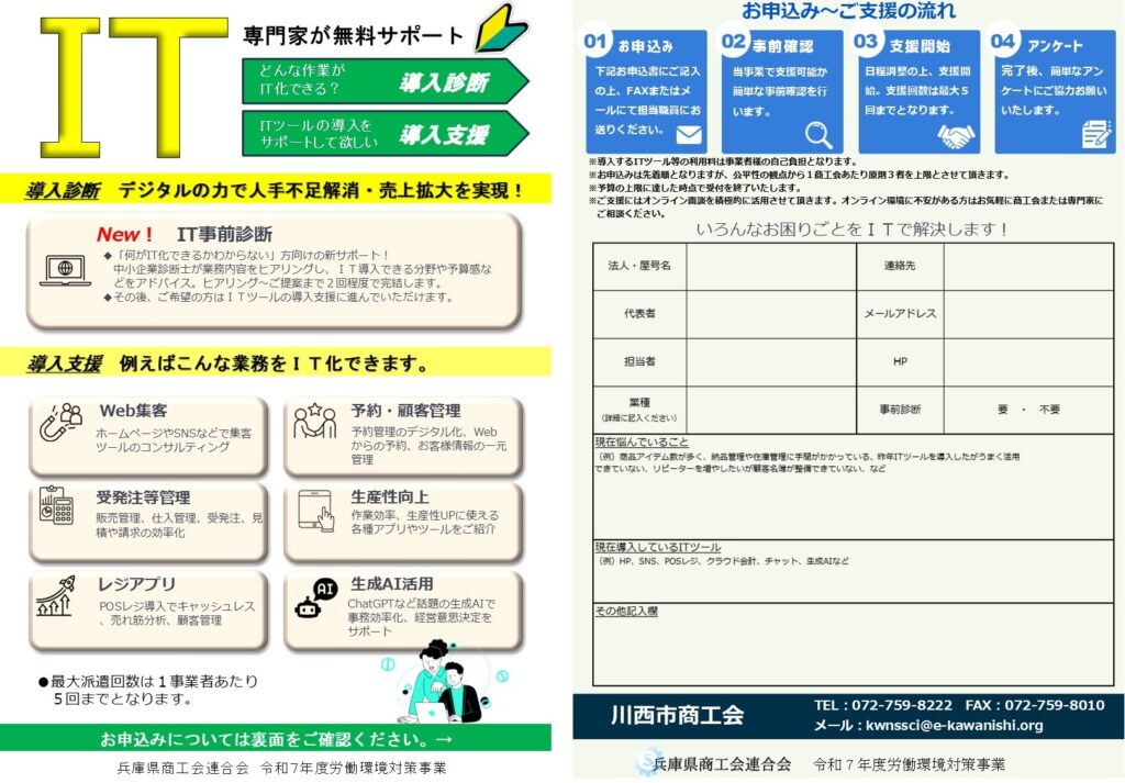 兵庫県商工会連合会と兵庫県中手企業診断士協会が連携し、原材料価格高騰等による売上減少や人材不足に悩む事業所へのIT導入支援として専門家派遣を実施します。