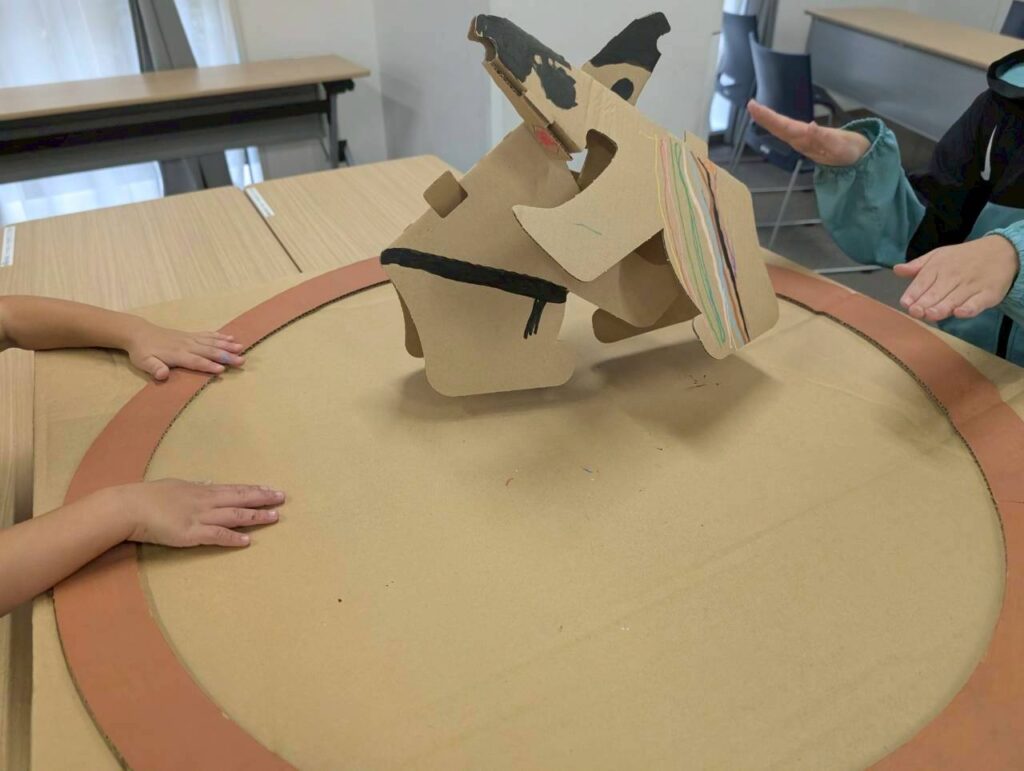 会場内では、地元事業者による飲食・物販・体験ブースなどが立ち並び、地域の魅力を発信しました。また、子どもたちが商売体験を行う「子どもアシスタント企画」や、ステージイベント、クイズラリーなど世代を超えて楽しめる催しを実施しました。さらにプラザ文化棟では、子どもたちが自分で作った紙相撲で遊べる「トントン紙相撲」も実施し、夢中になって楽しむ姿が見られました。